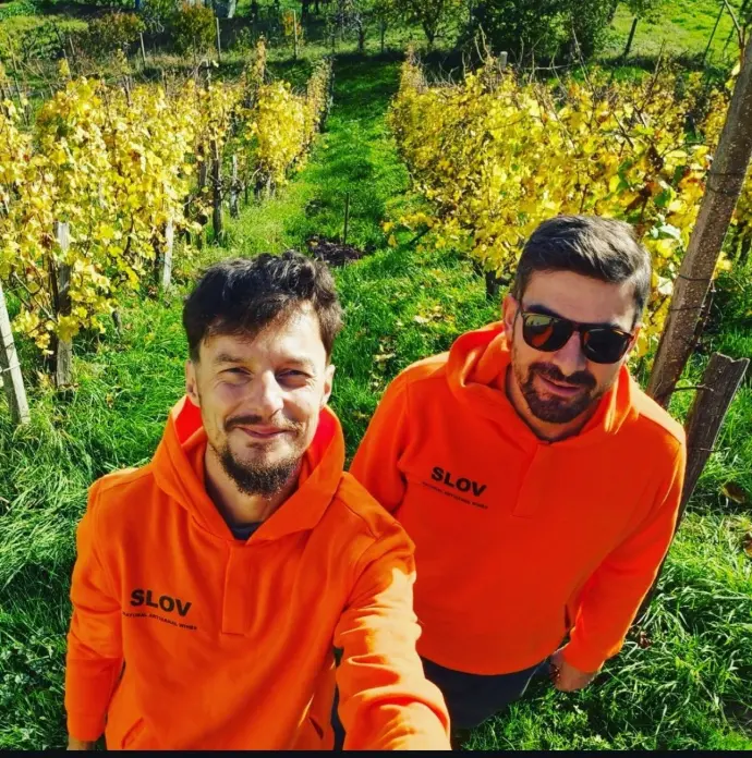 Slow Artisanal Wines is a small Slovenian project by friends Marko and Matija in Štajerska, crafting natural, minimal‑intervention wines that celebrate native grape varieties like Yellow Muscat. Their wines rely on spontaneous fermentation and extended skin contact, resulting in expressive, terroir-driven bottles full of character.